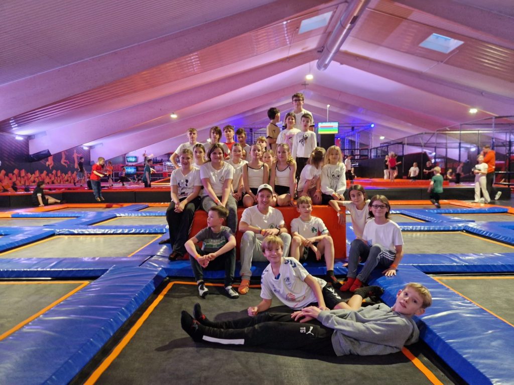 Los ging es mit einem großen Bus, der die Kinder und Jugendlichen zur Trampolinsprunghalle nach Limburgerhof brachte. Dort konnten sich alle 90 Minuten lang nach Herzenslust austoben, springen und jede Menge Spaß haben. Die Begeisterung war groß und die Stimmung von Anfang an hervorragend.